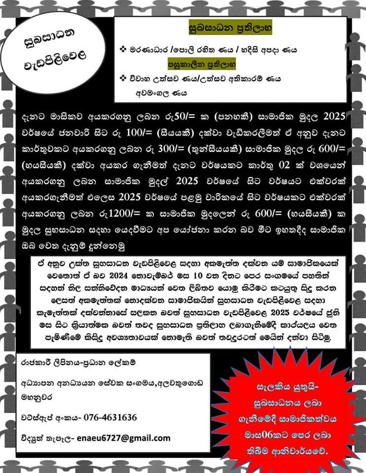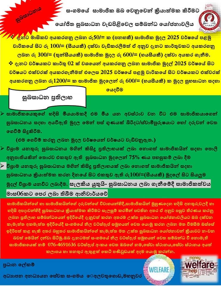 Welfare benefits – සුභසාධන ප්‍රතිලාබ